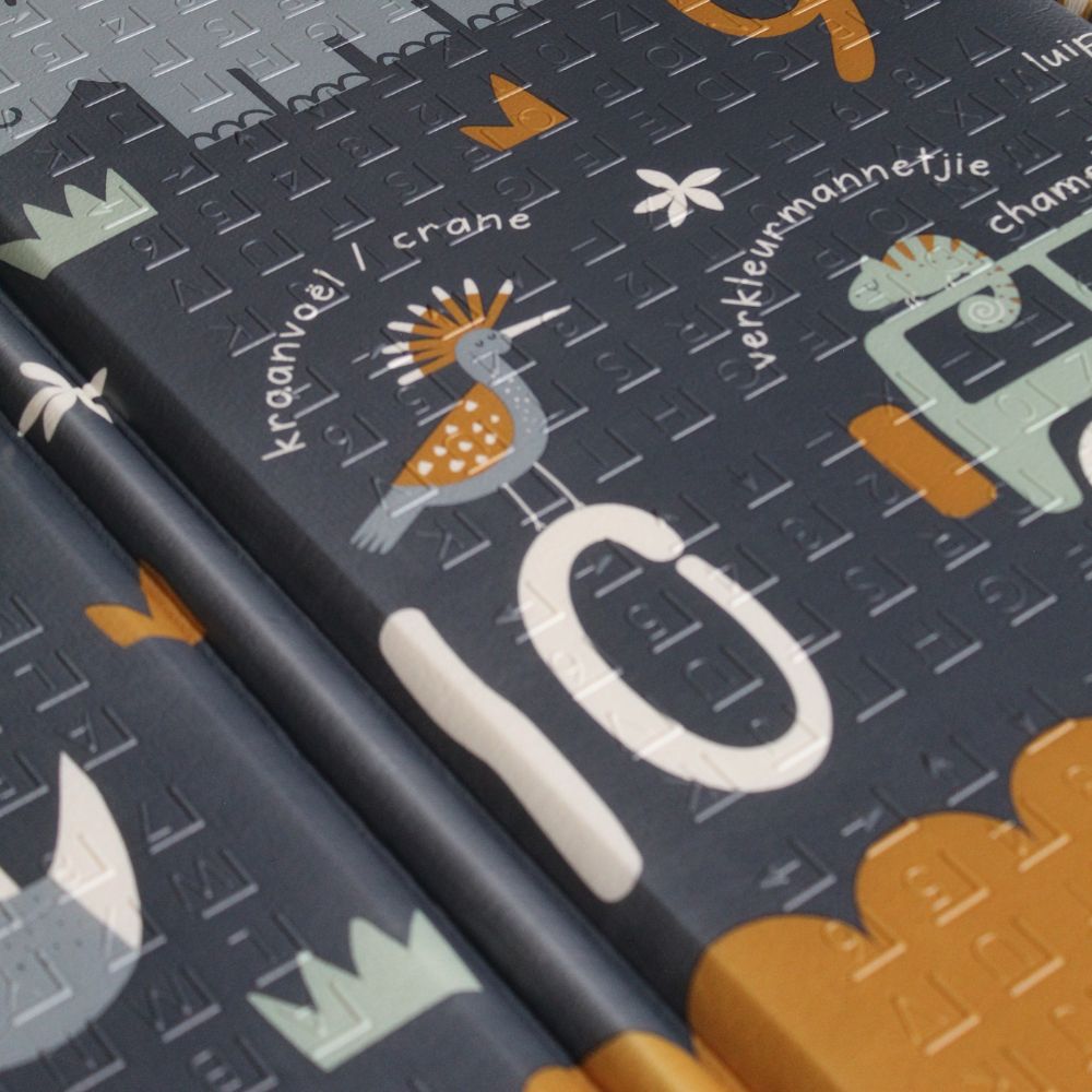 Learn ABCs and 1–10 with charming safari animals, labelled in English and Afrikaans for early language development.